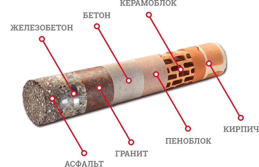 Зависит от диаметра отверстия, толщины стены, типа материала (бетон, железобетон), объема, доступа к обрабатываемой поверхности.
